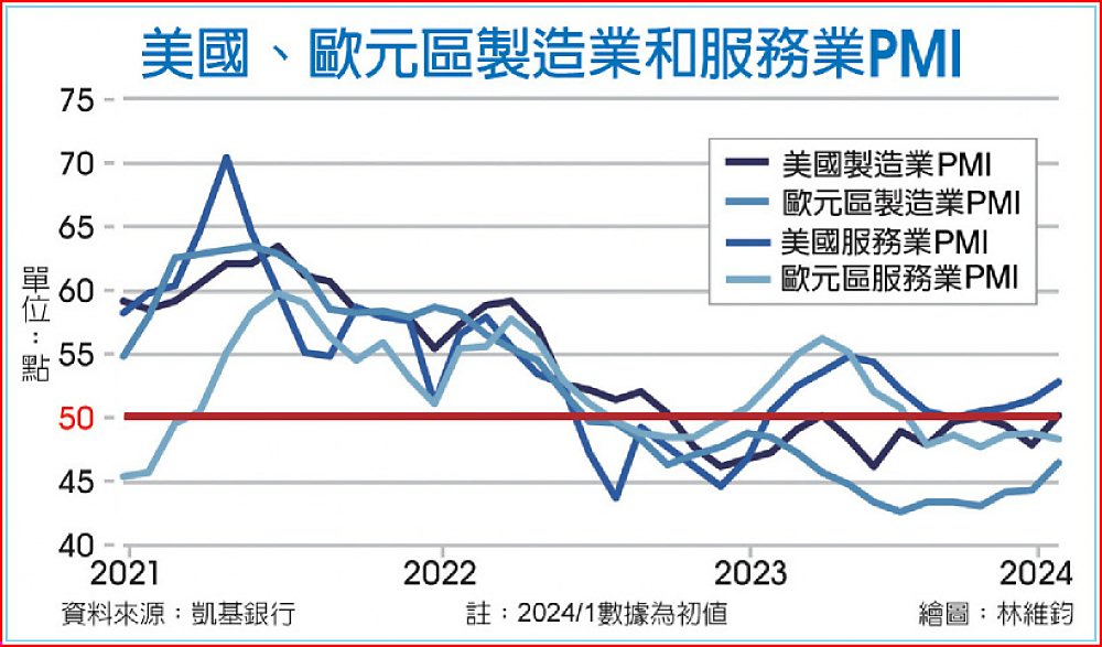 美國、歐元區製造業和服務業PMI