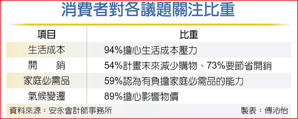 安永的調查是於2023年9月11日至10月6日進行,對象包括全球28個國家約2.2萬名消費者,結果顯示9成受訪者對後續生活成本可能上揚充滿擔憂。台灣近期電價上漲議題發燒,同樣可能成為後續影響消費者信心的關鍵。