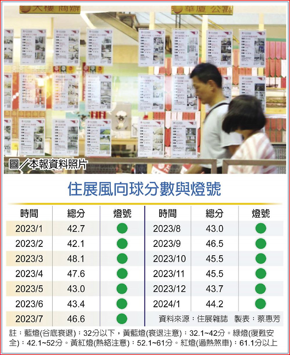 住展風向球分數與燈號 住展雜誌指出,目前全台房市應已有感加溫,推測3月央行升息機率不高,有利於329檔期發揮。圖/本報資料照片