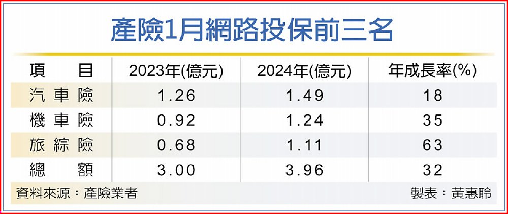 產險1月網路投保前三名