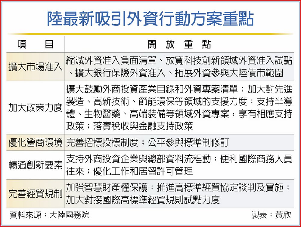 陸最新吸引外資行動方案重點