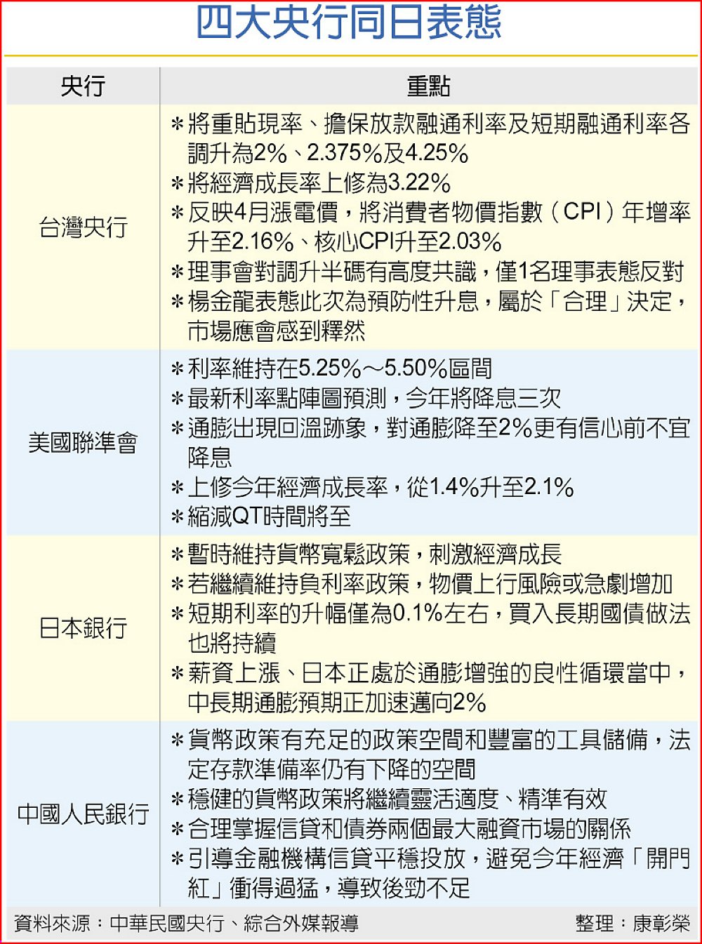 四大央行同日表態