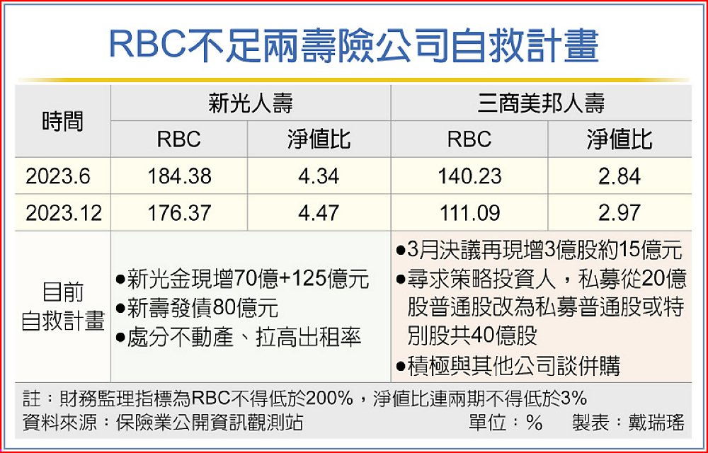 RBC不足兩壽險公司自救計畫