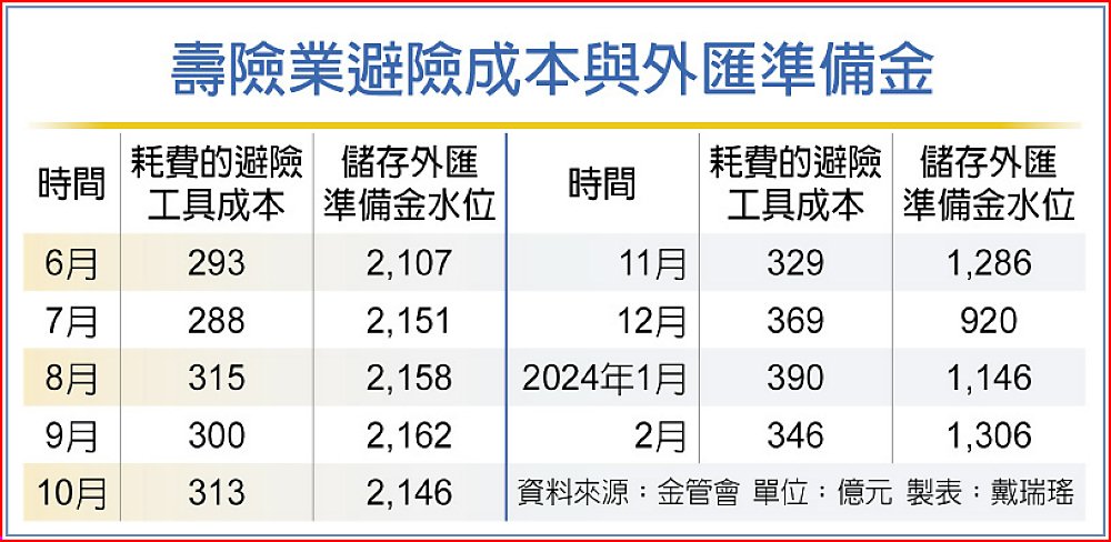 台美利差未大幅縮小,壽險外匯避險成本持續飆高,急著爭取外匯價格準備金新方案,作為「外匯紓困」,業者表示「先求有再求好」,先能「喘息」,把錢留住,之後再逐步優化制度。