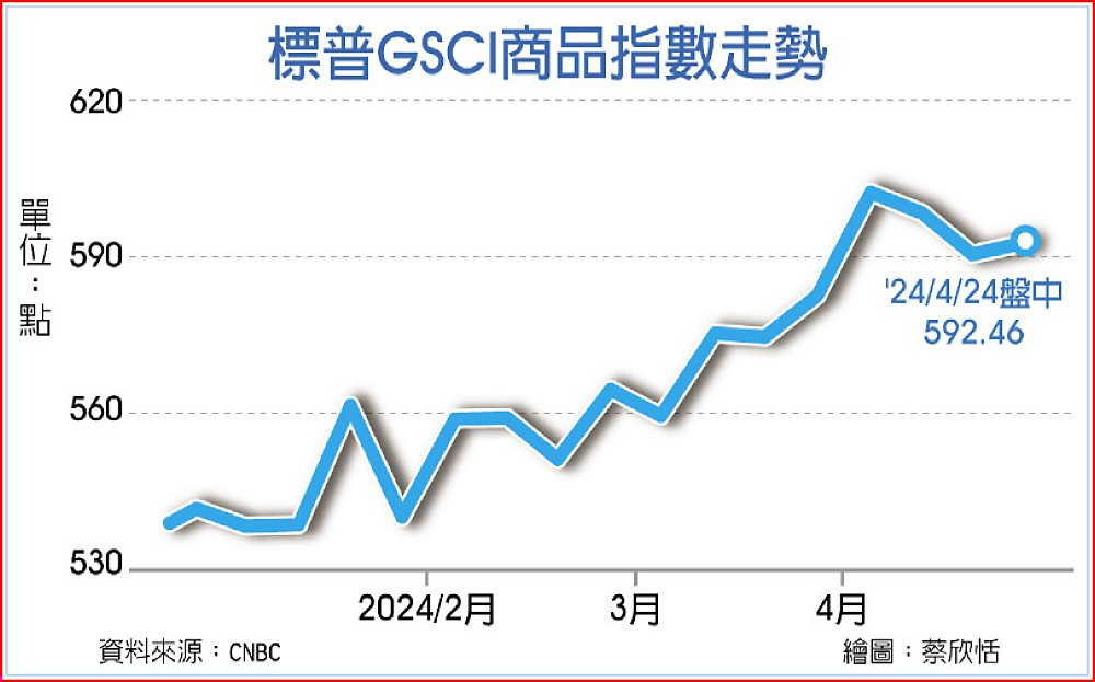 今年截至本月23日為止,追蹤全球大宗商品的標普高盛商品指數(S&P GSCI)勁漲9%,漲幅勝過美股標普500指數。