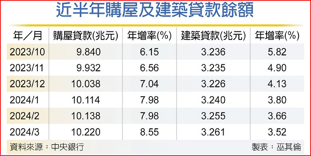 近期國內房市出現反彈行情,購屋貸餘額年增率一路上升,房貸餘額年增率已連十個月上揚,從去年5月的4.54%一路到3月飆到8.55%,下一步挑戰2022年7月的前高8.64%。
