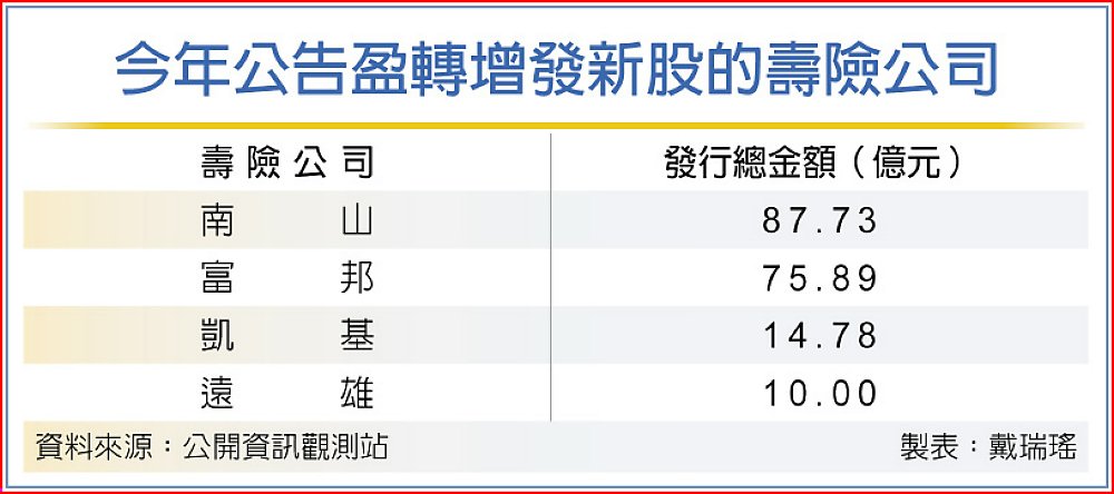 今年已有四家壽險公告盈餘轉增資,即南山人壽、富邦人壽、凱基人壽、遠雄人壽,其中南山人壽盈餘轉增資的金額高達87.73億元,為目前已公告四家壽險公司中最高。圖/南山人壽提供
