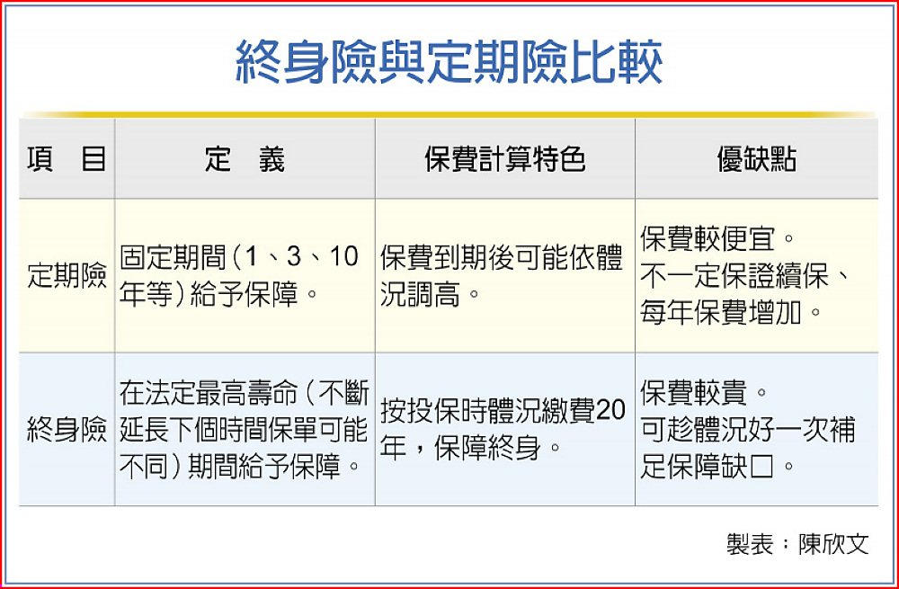 壽險業者表示,不論癌症或是重大疾病,一旦進入治療階段,就有可能因為工作中斷而失去收入來源,如果事先透過癌症險、實支實付醫療險、重大疾病險等相關保單,可以轉嫁因大病治療而導致經濟壓力的風險。不過,隨著近年來保費不斷高漲,想要建構完整的保障可能無法支應每年的保費支出,因此建議民眾可以搭配定期險來補足保障缺口。