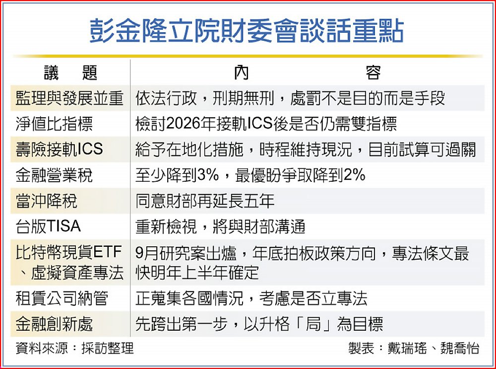 彭金隆立院財委會談話重點