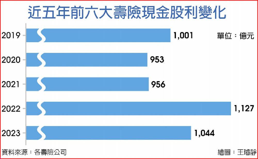 大型壽險股市策略轉往資本利得或著重總回報,預估今年壽險現金股利收入將下降,去年前六大壽險領到的現金股利約1,044億元,較2022年減少近8%,今年預期可能低於千億元,但資本利得首季是是去年同期的1倍以上,全年亦可能有逾1,600億元的股市資本利得,彌補減少的股利收入。