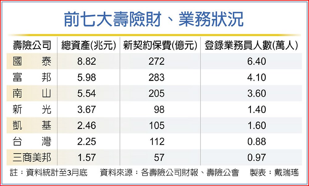 國內前八大資產逾兆元的壽險公司,即國泰、富邦、南山、新光、凱基、台灣、三商美邦及全球人壽,亦都有自家業務員團隊,任兩家合併,都會改變現有排名,只是在2026年接軌前,各壽險公司光發債、現增就已有很大壓力,此時要進行「壽壽併」,除非已有信心接軌過關,或財務實力雄厚,否則應很難成行。