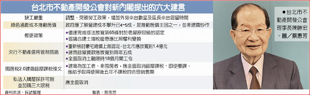 台北市不動產開發公會理事長陳勝宏率十餘家大咖建商,向新內閣喊話,提出六大建言。圖/本報資料照片