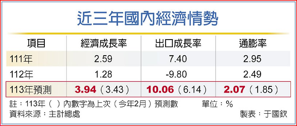 主計長陳淑姿說,今年經濟成長上修至3.94%,因輸出增加的量很大,綜合統計處長蔡鈺泰看法,今年資通訊產品出口表現非常好,關鍵在於各國企業、政府對於AI應用及建置需求非常強勁,我國剛好有足夠的產能,研判這個需求將延續,因此上修今年出口規模至4,759億美元,比原預測大幅提高170億美元,今年出口成長率也由原預測6.14%調升至10.06%。