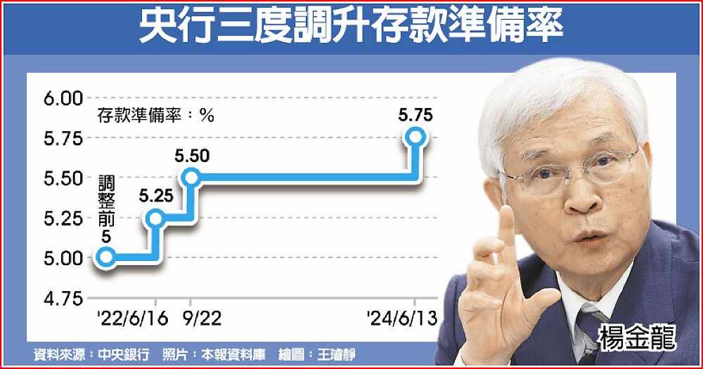 央行三度調升存款準備率