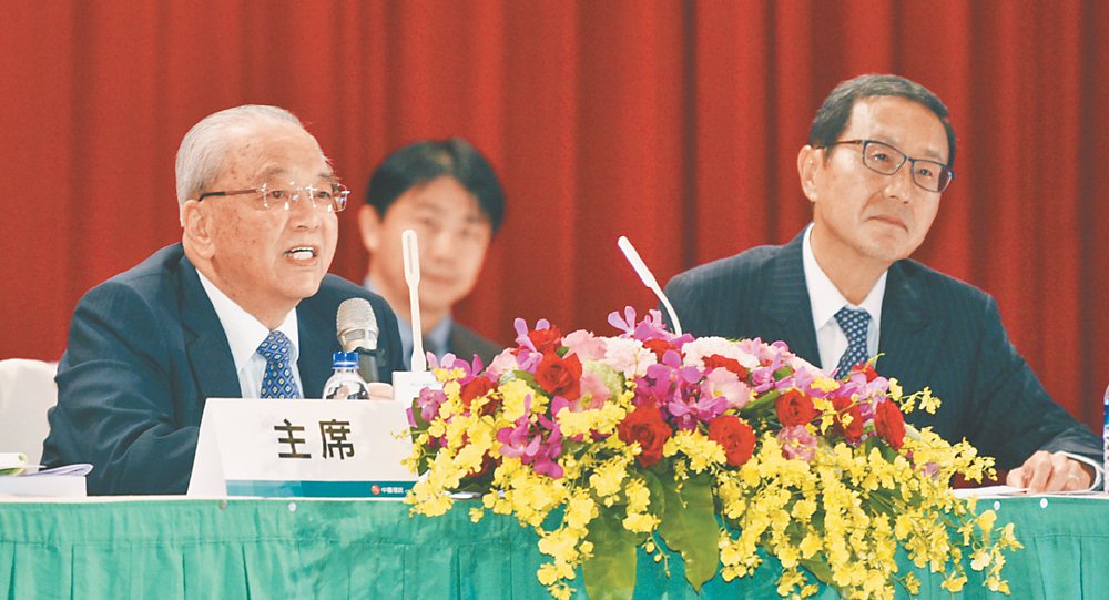 中信金控14日舉行股東常會,董事長顏文隆(左)及總經理陳佳文(右)出席。圖/顏謙隆