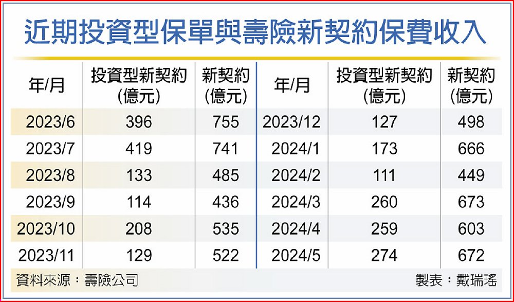 因投資型保單買氣升溫,貢獻壽險業新契約保費比率已連續兩個月在4成之上,5月投資型保單貢獻壽險新契約保費占比來到41%,較去年8月以來到今年3月、連續八個月占比僅2成~3成,4月、5月明顯投資型保單重回壽險新契約保費主力。