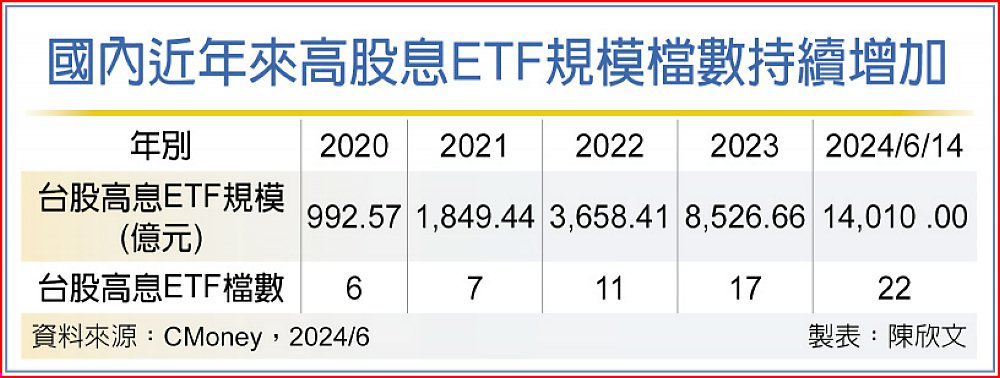 基金業者指出,退休理財的興起是近年來高股息ETF快速成長的重要原因。台灣65歲以上人口占比預估今年將突破19%,高齡化加速的同時,凸顯退休理財需求龐大,因此帶動高股息ETF加速成長,尤其國內高息ETF近年來配息表現穩定,吸引退休族群資金回到台股市場尋求退休方案。