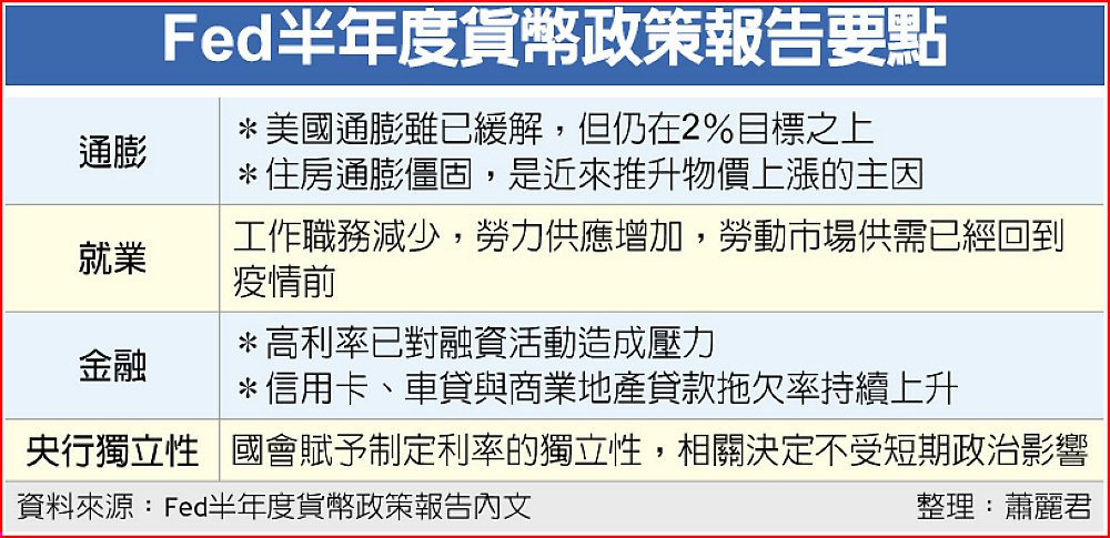 鮑爾將於9日先到參議院銀行委員會發表半年度貨幣政策證詞,在他赴國會前,Fed已在官網公布這份貨幣政策報告內容。