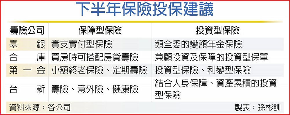 臺銀人壽建議,在投資型保單方面,目前以推展類全委的變額年金保險為主。面對情勢詭譎多變的金融市場,投資也可以化繁為簡,將投資交給專業的投信團隊,把時間留給心愛的家人,輕鬆達到財產增值的目標。