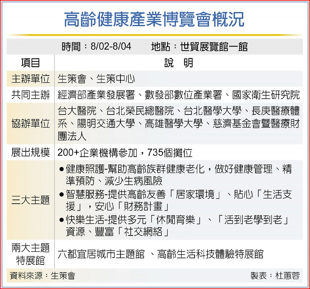 國科會科技會報副執秘呂佩融表示,「高齡科技產業行動計畫」從鼓勵跨業合作、促使高齡科技產品/服務落地,高齡健康產業博覽會將是最好的場域。