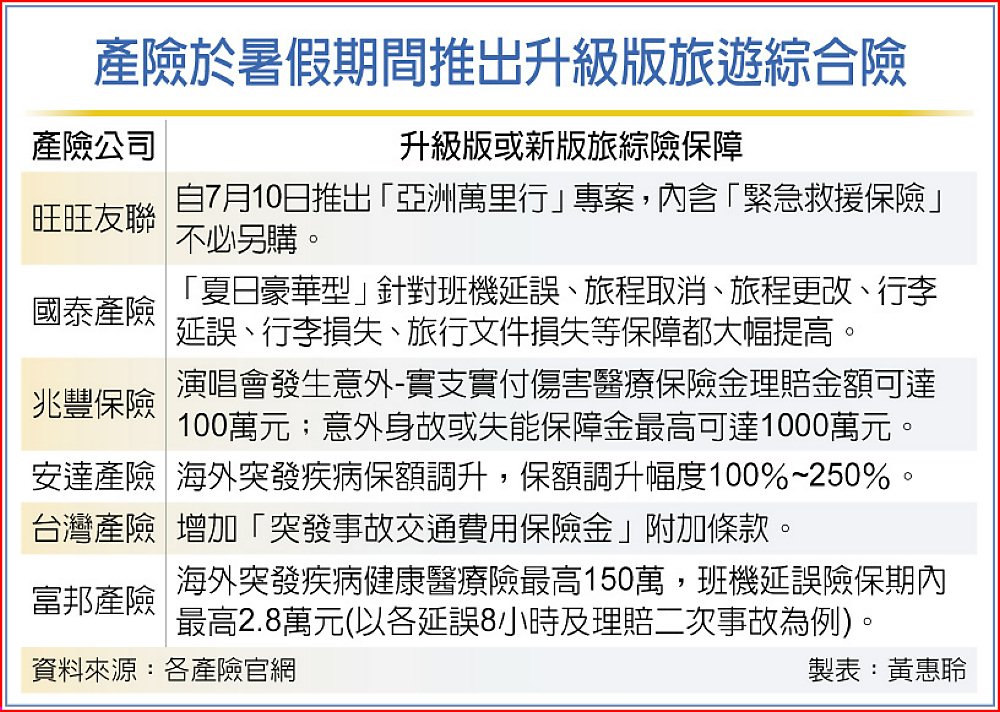 繼安達、台產、富邦產之後,又有三家產險推出升級版旅綜險。圖/本報資料照片