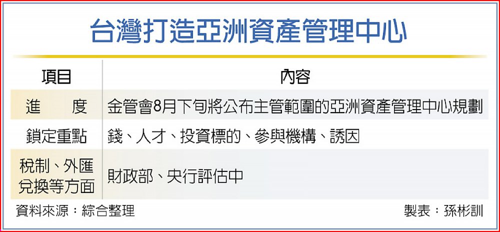 政府將推動打造台灣成為亞洲資產管理中心的六年計畫,金融業者「急待起跑」。圖為金管會示意圖。圖/本報資料照片