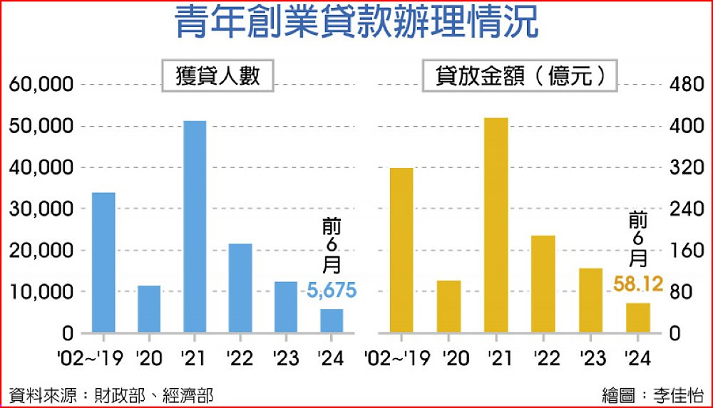 青創貸款額度100萬元以內,可以免擔保品和保證人,官員表示,因此多數申請案件金額不高,平均每戶貸款金額僅88.56萬元,但就人數來看,政策推出以來共已協助逾13.6萬個「小當家」一圓創業夢。