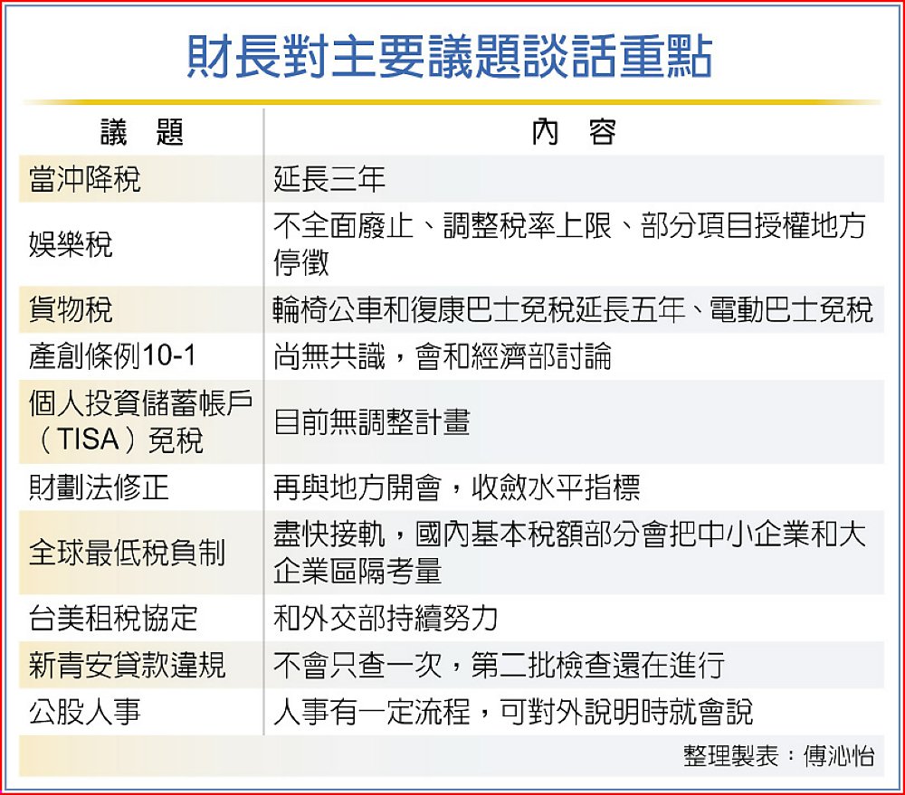 財長對主要議題談話重點