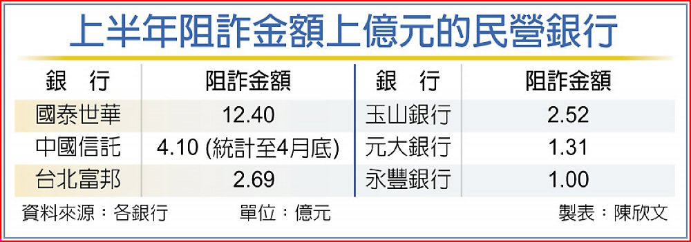 國泰世華銀上半年已攔阻逾2,000件詐騙案,金額達新台幣12.4億元,阻詐金額遠高於其他銀行。圖/本報資料照片