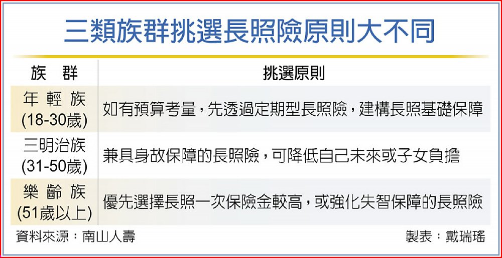 台壽表示,規劃長照險重點在需要的保額與可負擔的保費間取得平衡,盡量避免因還本或終身型的考量而犧牲保額。另要留意長照險的「免責期」,當被保險人經醫師判定符合長照狀態,須持續一段期間,普遍為90日,保單才會啟動理賠。