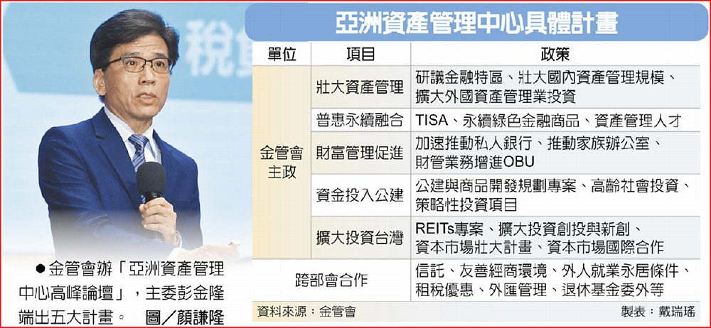 金管會辦「亞洲資產管理中心高峰論壇」,主委彭金隆端出五大計畫。圖/顏謙隆