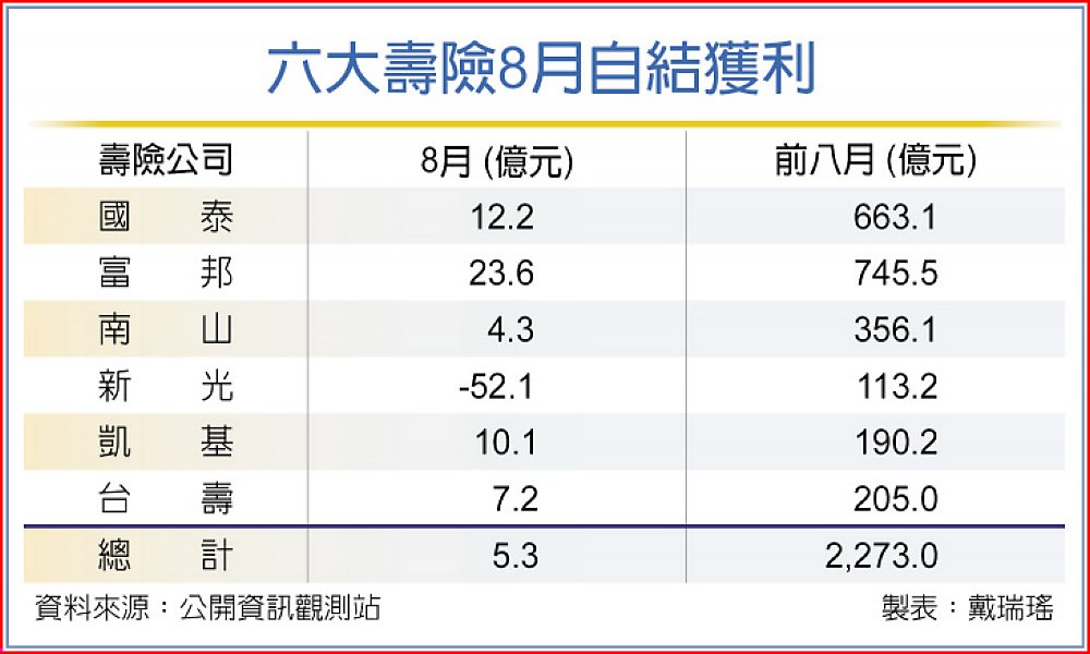 六大壽險8月自結獲利