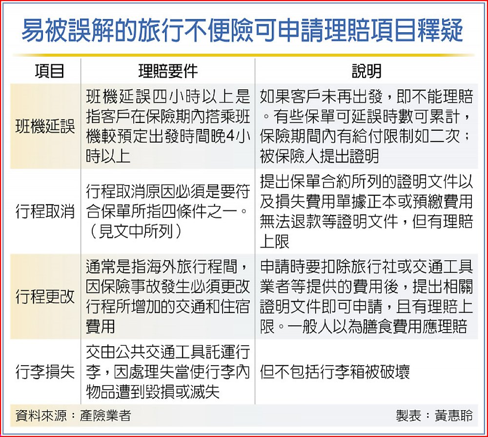 易被誤解的旅行不便險可申請理賠項目釋疑