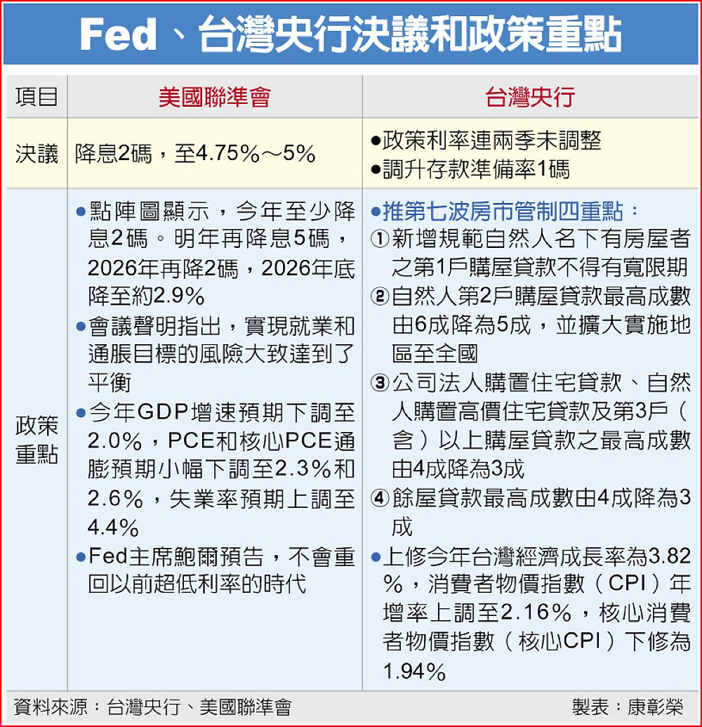 Fed、台灣央行決議和政策重點