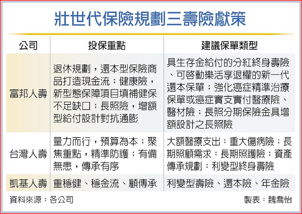 凱基人壽則建議以「穩中求盈」的方式規劃,因應未來通膨及長壽風險。保險規劃建議以「重穩健」、「穩金流」、「顧傳承」三原則,確保安心的樂活晚年。