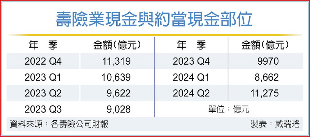 因美國聯準會(Fed)降息不確定性,保單解約量攀升,支付避險保證金也需要現金,壽險業第一季現金與約當現金部位跌破9,000億元至8,662億元、創2018年以來新低,且連續四季低於兆元;今年2月起持續有保單解約,加上預先因應新台幣急升可能,積極籌措現金。