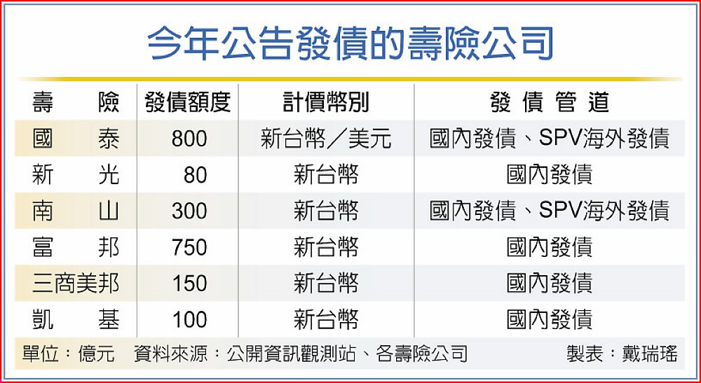 今年公告發債的壽險公司