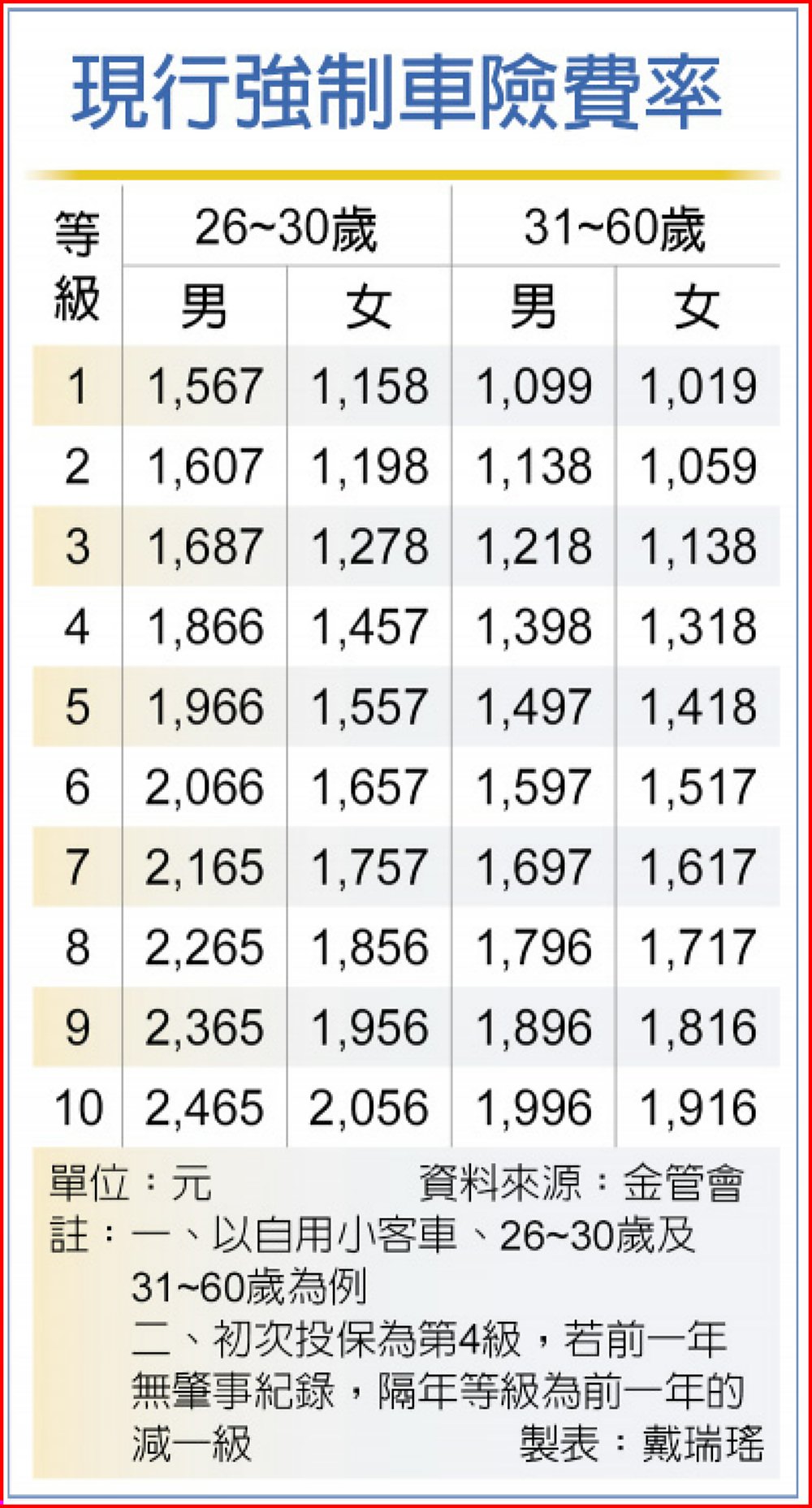 現行強制車險費率