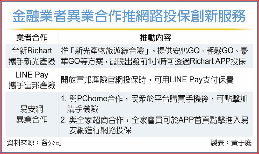 金融業者異業合作推網路投保創新服務