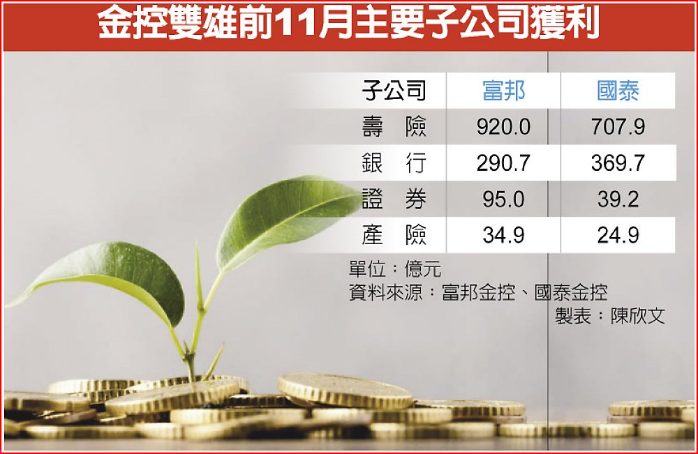 金控雙雄前11月主要子公司獲利