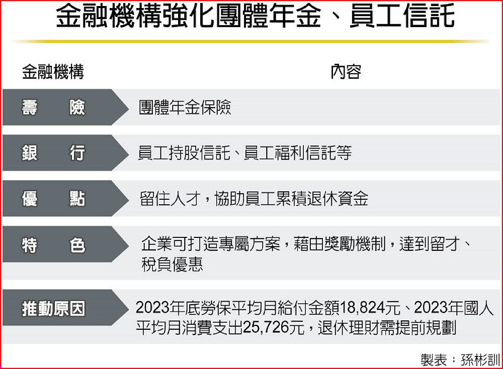 華南銀行主管強調,企業可善用員工持股信託或員工福儲信託機制,由員工組成員工福利信託委員會,約定每月自其薪資所得中提存一定金額的「員工提存金」,企業相對提撥一定金額予參加員工作為獎勵的「公司獎勵金」,經由委員會統一交付至信託專戶後,定期定額投資於企業的股票或基金商品,並依約定的目的為管理運用及返還,協助規劃員工的退休生活。