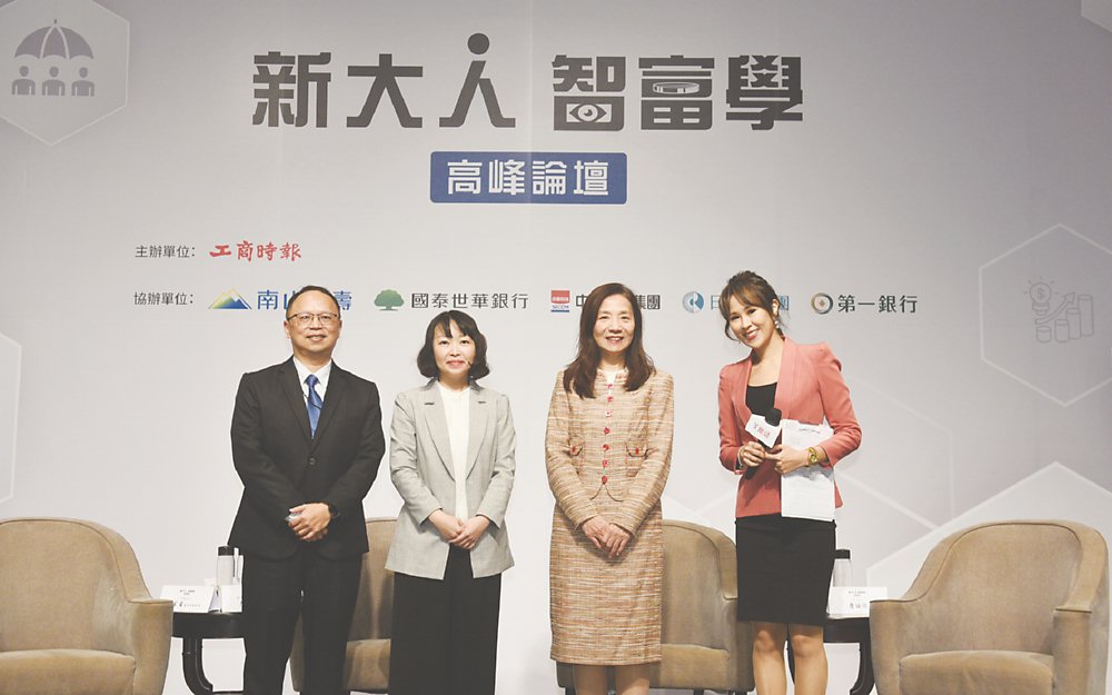 ●工商時報18日舉辦「新大人智富學」樂齡高峰論壇,安聯投信海外投資首席許家豪(左起)、國泰世華銀行信託部協理陳美娟、中華民國退休基金協會理事長巫慧燕及財經主播詹璇依共同進行研討。圖/顏謙隆