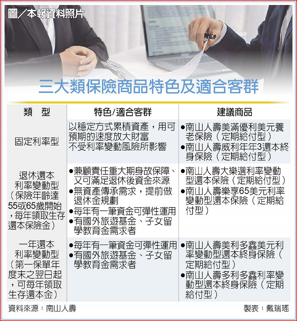 南山人壽建議,無論是想穩健蓄積財富、或希望定期有資金彈性運用的民眾,都可趁著一年之初,依據自身需求規劃不同類型的保險。圖/本報資料照片