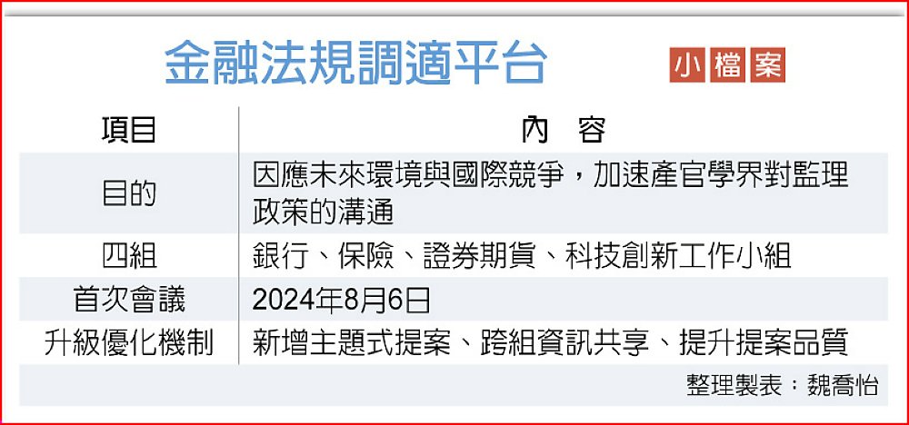 不過,運作半年來,各界認為「金融行動創新法規調適平台」可再做些優化、提升效率與品質,以加速落實法規調適。18日會議中做出三大決議,一是新增「主題式」會議,針對有急迫性、影響性較大的議題可做「主題式」的討論,像是亞洲資產管理中心、RWA、數位保險、AI、數位身份驗證等可跨部門溝通。