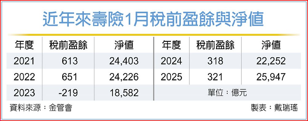 近年來壽險1月稅前盈餘與淨值