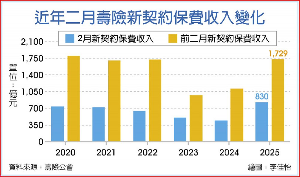 壽險今年業績升溫最大關鍵,來自投資型保單熱銷,2023年7月開始因新制效應,投資型保單銷售陷入低迷,直到去年下半年才回溫,2月投資型保單賣361億元,年增高達2.2倍,主要就是市場已開始熟悉新制,加上近年資本市場維持多頭,而在市場震盪的情況下,部分壽險主打相對穩健的類全委保單吸引保戶。前二月投資型保單已賣740億元,相對去年同期僅賣285億元,年增1.6倍。