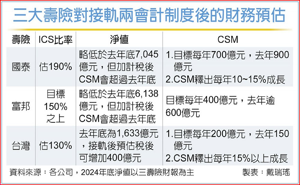 三大壽險對接軌兩會計制度後的財務預估
