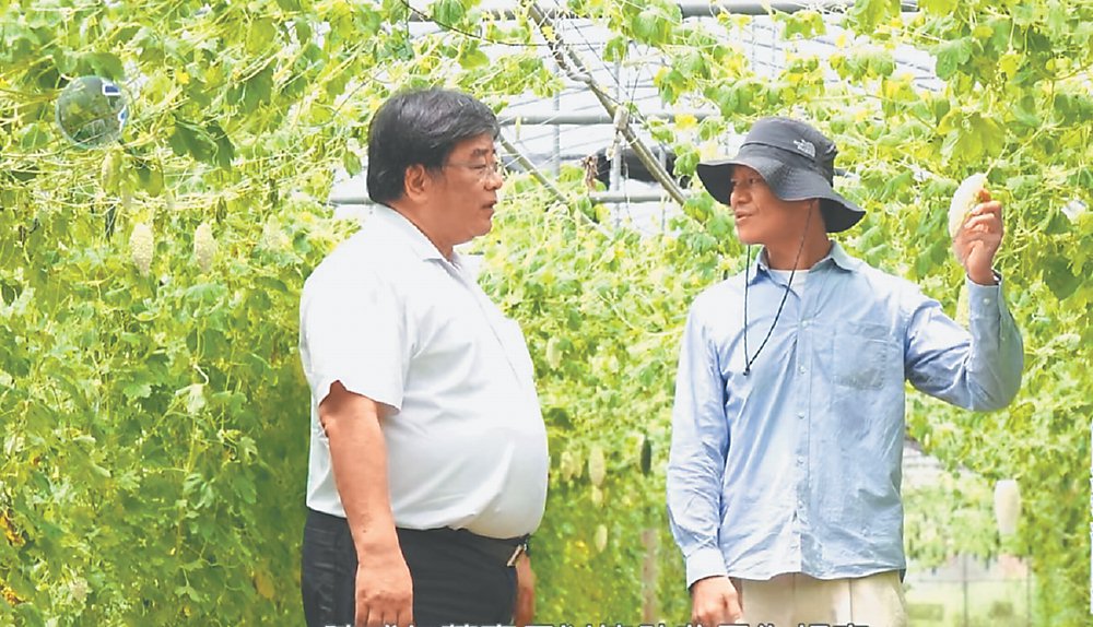 ●生展生技專責太康有機園區有機蔬菜原料開發的曾明中博士(右)向董事長陳威仁(左)解說研發進度。圖/生展生技提供