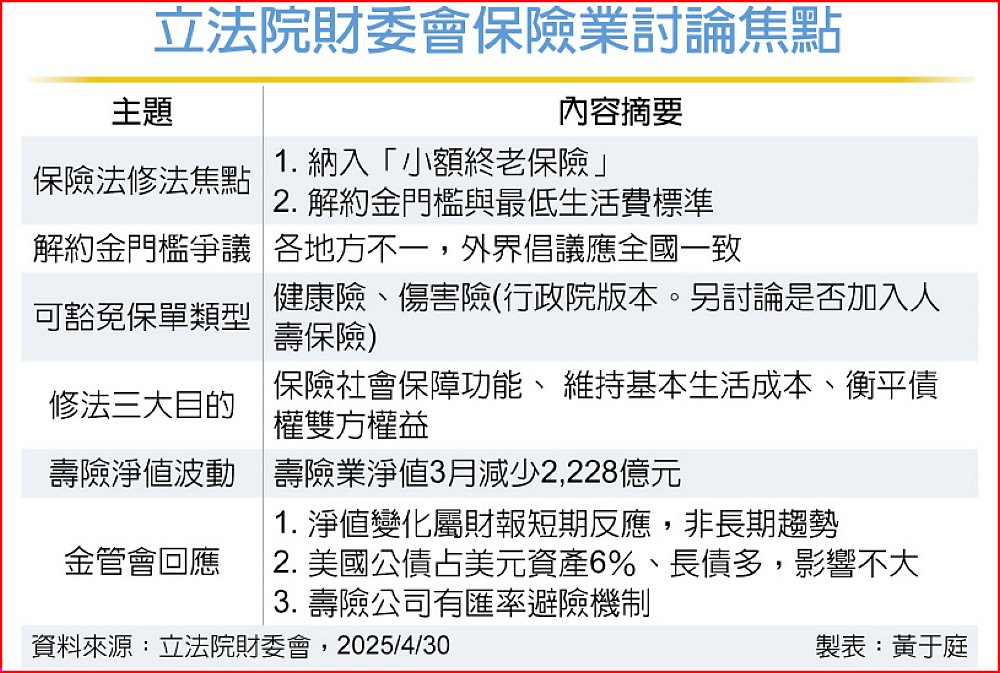 立法院財政委員會30日審議保險法修法,聚焦兩大重點。圖/本報資料照片