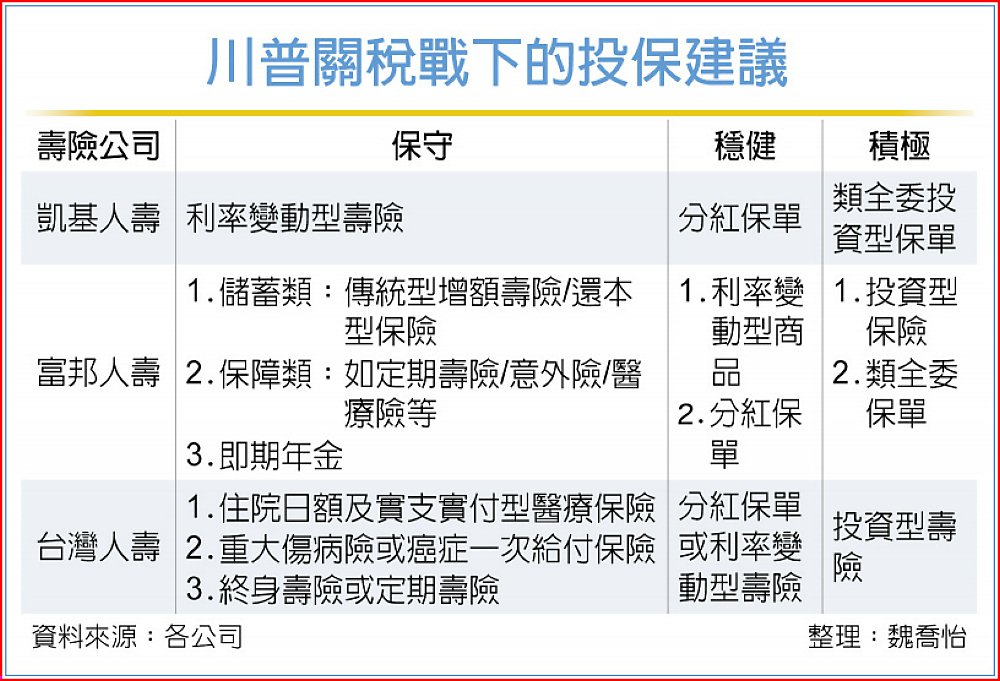 富邦人壽指出,保守型客戶的核心需求是安全、穩定、風險低,通常不願意承擔本金虧損的風險,對投資回報的要求不高,更看重資產的保全和穩定的保障,傳統型增額壽險、還本型保險、定期壽、即期年金等,符合這些需求。儲蓄型保險透過時間複利累積資產,保障型保險則提供明確的風險轉嫁,年金險則提供穩定的現金流。